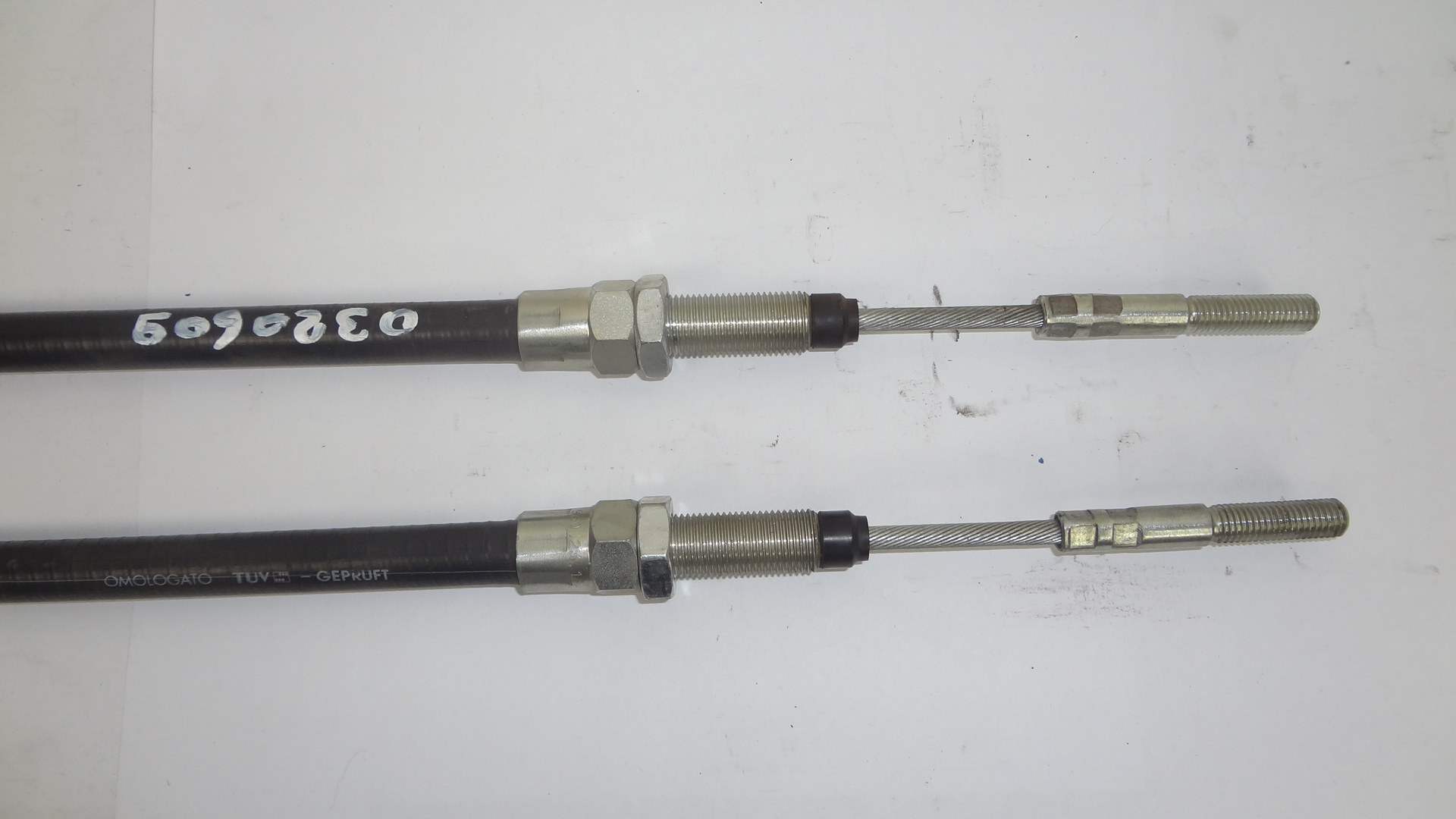 Longueur totale : 870mm Longueur gaine : 500mm Diametre cable 5mm 2 Tiges filetees 10mm pas a droite